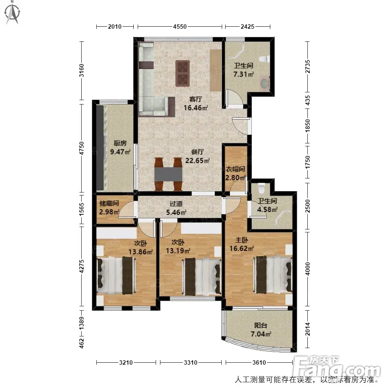 户型齐全,主打明卫,独立衣帽间,明厨,双卧朝南三居