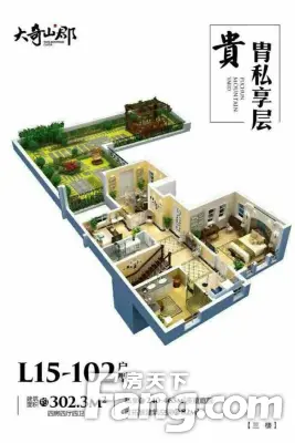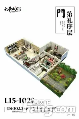 大奇山郡户型主要有302平-312平的全明格局,户型方正,动静分离,卧室朝南,独立庭院的四居 。