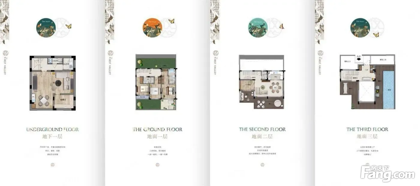 房源详情:产证面积195平,地下一层(全赠送),地上三层,户户赠送私家泳池,精装修,送中央空调、地暖,装修标准:3200/㎡。 《1》-1层:地下室赠送新风系统,全明地下室,全赠送,可以做一个瑜伽室,健身房,储藏间,洗衣房。 《2》1层:一个套房设计豪华主卧,独立衣帽间,全明卫浴,可步入庭院,两个套房设计的豪华次卧,一线山景景观。 《3》2层:客厅挑高6.5米,配上金色吊灯可以做一个豪华客厅、餐厅、厅与阳台相连,赠送露台30平左右,厨房,厨房赠送冰箱、烤箱,一个观景书房,也可以做为一个老人房,一个客卫。 《4》3层:赠送的一个私家泳池和露台28平,一线山景景观