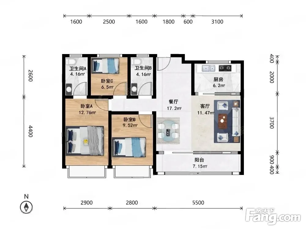3室2厅1卫