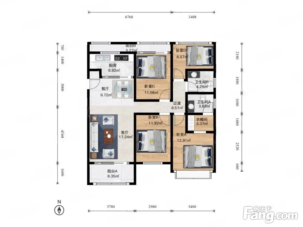 户型齐全,主打全明格局,户型方正,动静分离,三开间朝南四居