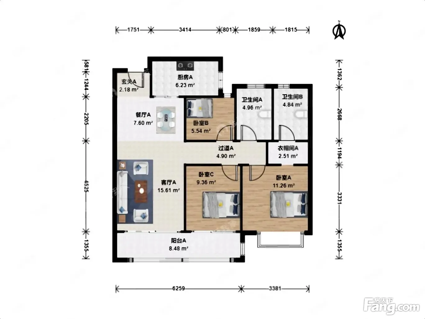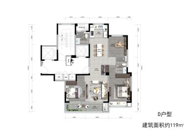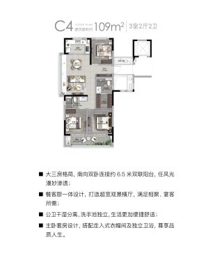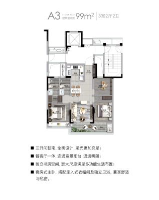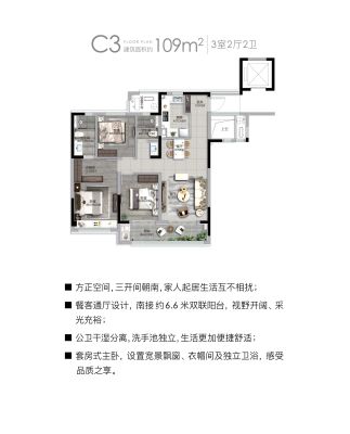 户型齐全,主打户型方正,独立衣帽间三居