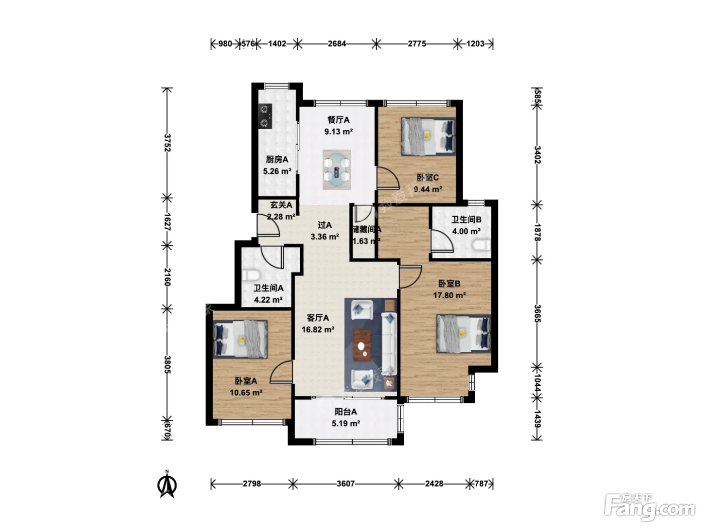 户型齐全,主打户型方正,明厨,明卫,客厅朝南,全明格局,双卧朝南四居