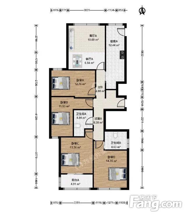 彩虹城·太阳国际·4室·2厅