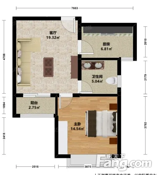 户型齐全,主打明卫,明厨,主卧朝南一居
