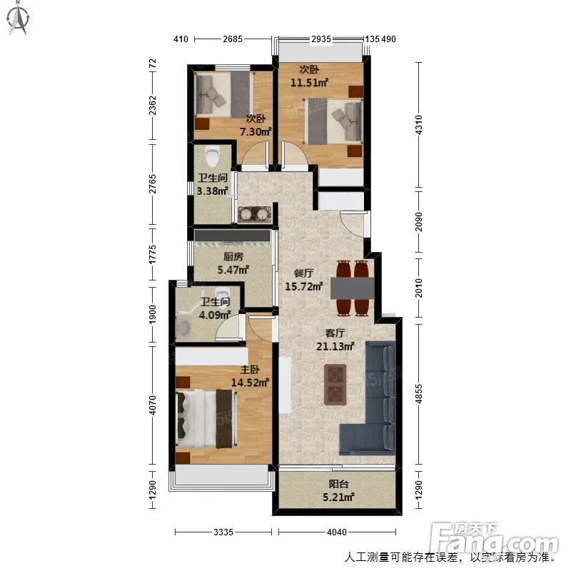 户型齐全,主打南北通透,主卧套间,L型厨房三居