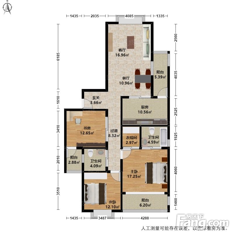 户型齐全,主打户型方正,独立衣帽间,明卫,客厅朝南三居