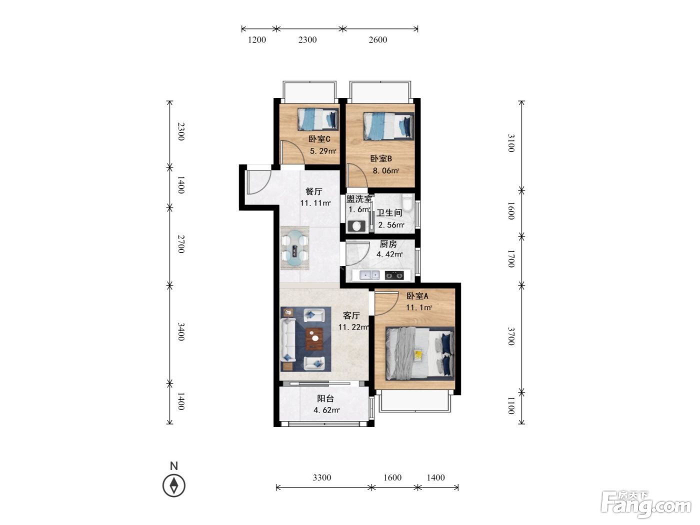 3室2厅1卫