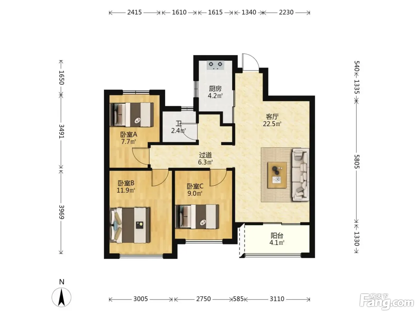 3室2厅1卫