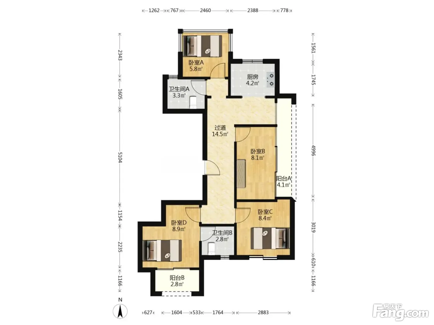 户型齐全,主打户型方正,明厨,明卫,双卧朝南四居