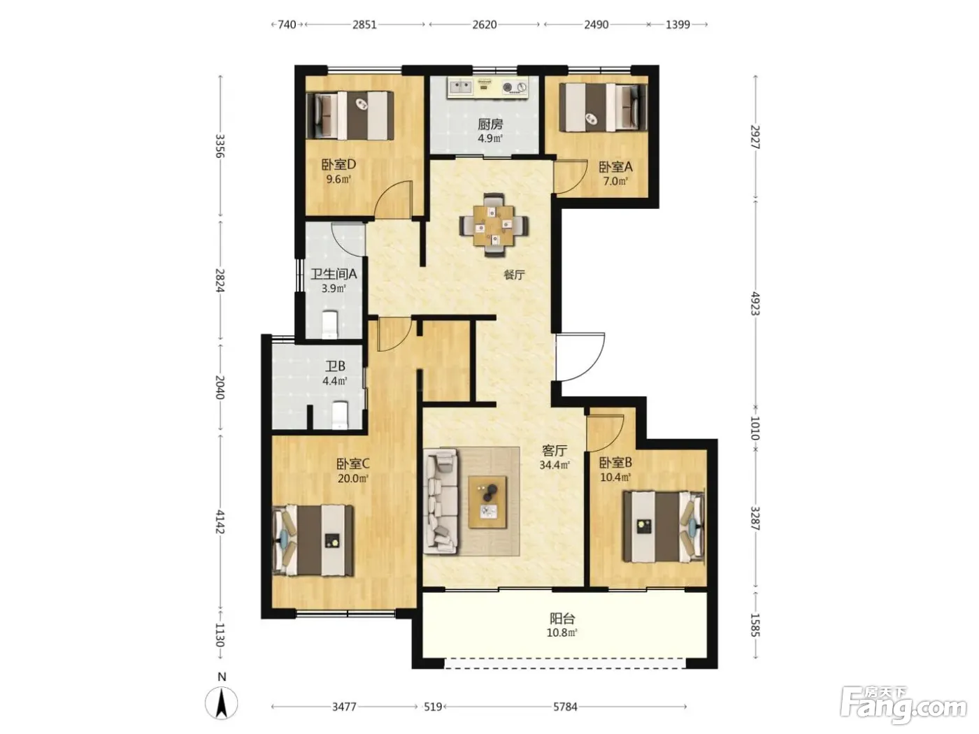 户型齐全,主打南北通透,全明格局四居