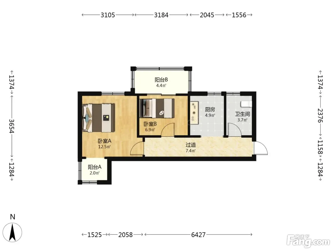 户型齐全,主打明厨,明卫,双阳台二居