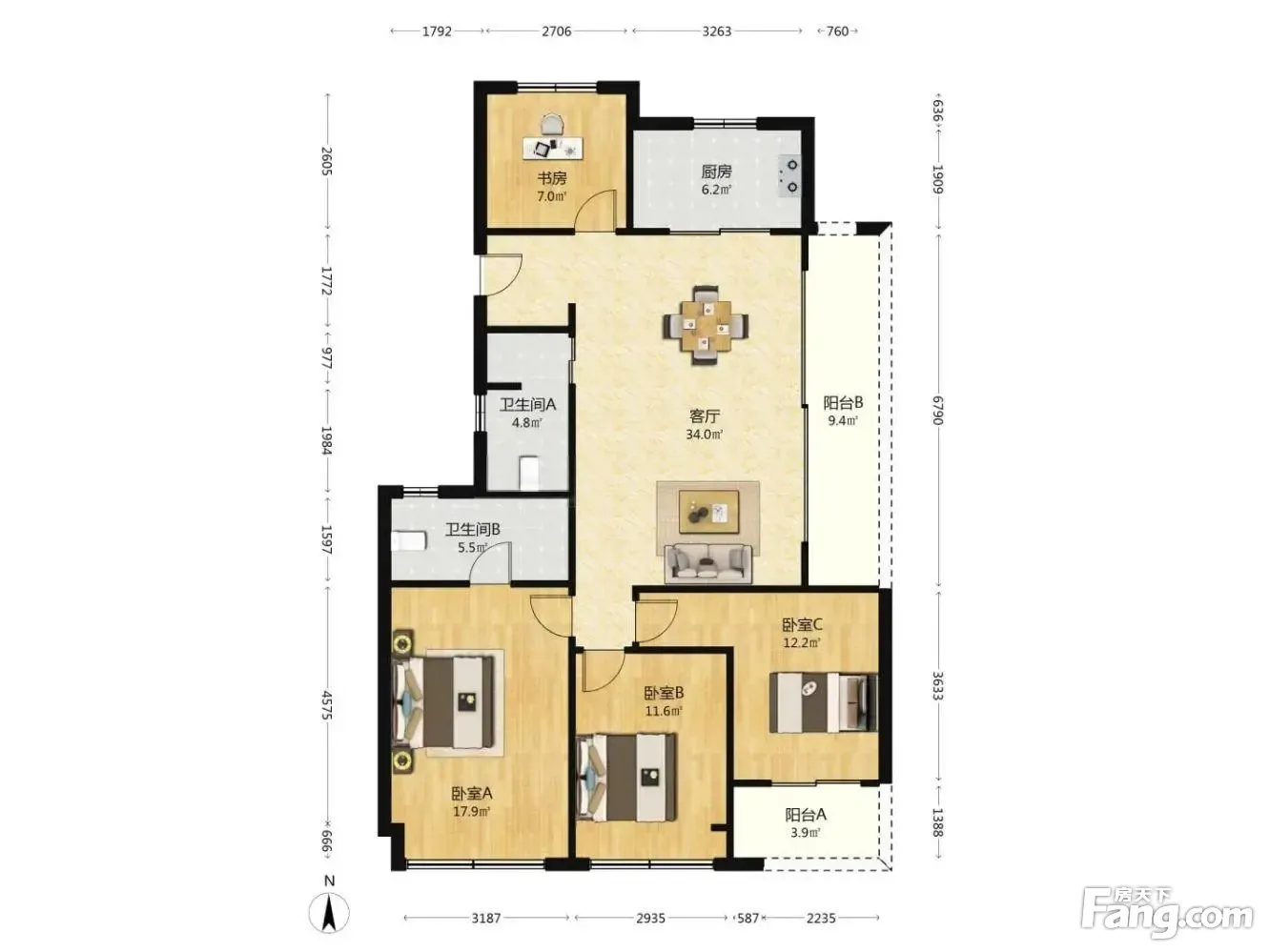 户型齐全,主打南北通透,采光充足三居