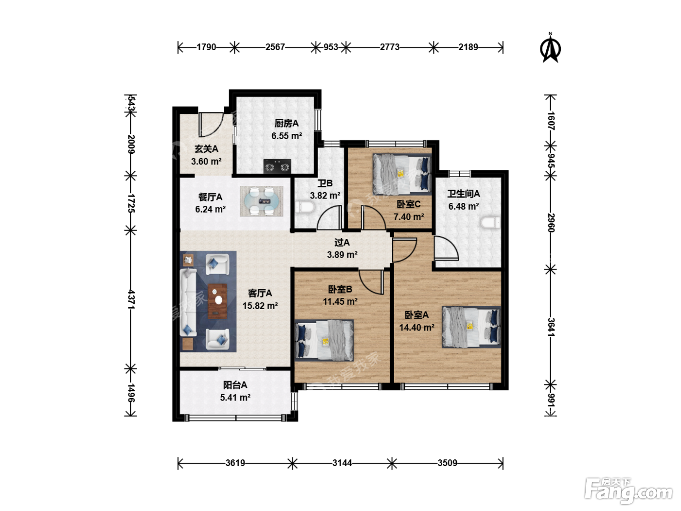 户型齐全,主打南北通透,户型方正三居