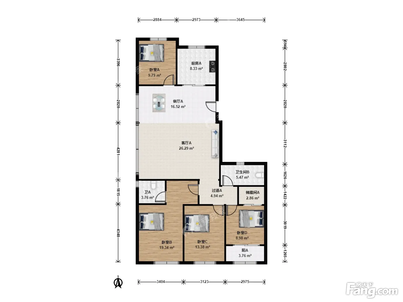 户型齐全,主打南北通透,全明格局四居