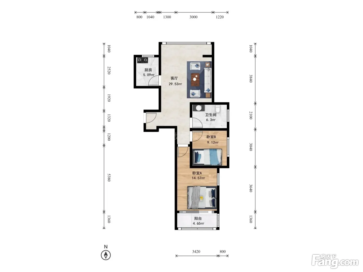 户型齐全,主打明卫,明厨,客厅朝南,双阳台二居