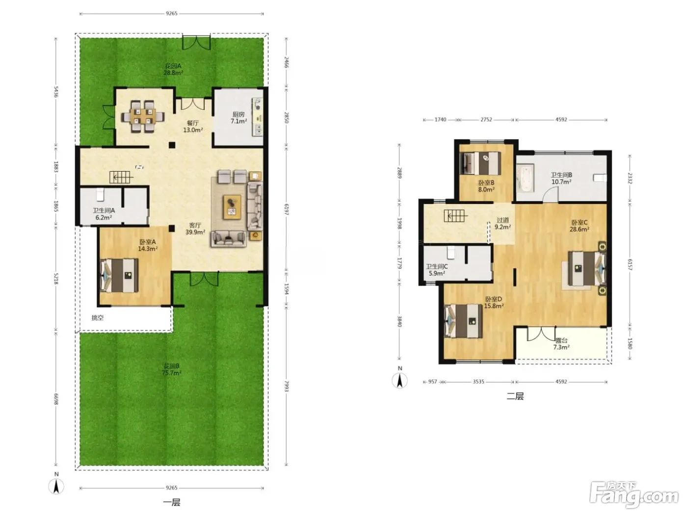 双拼中式排屋 阳光 双层双车位