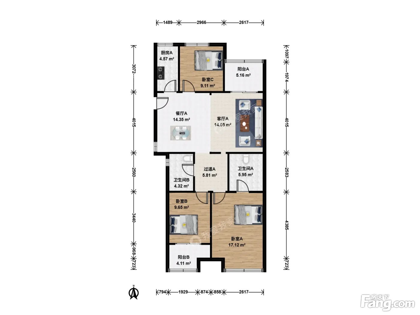 户型齐全,主打明厨,独立衣帽间,明卫,双卧朝南,主卧朝南三居