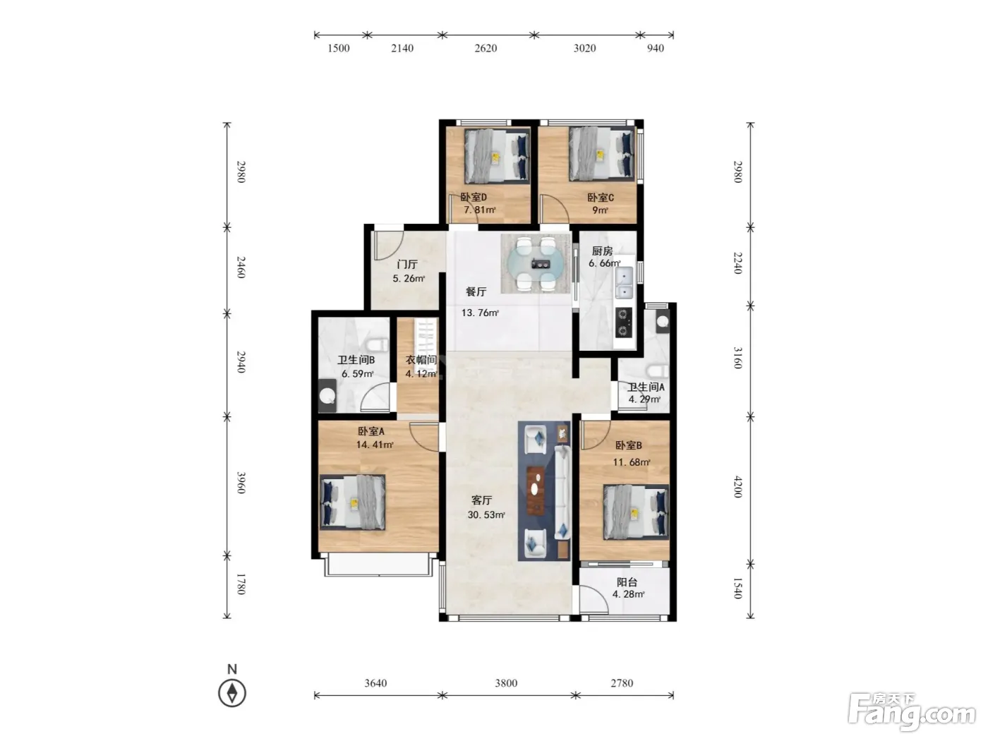 申花·珑玺公寓·4室·2厅