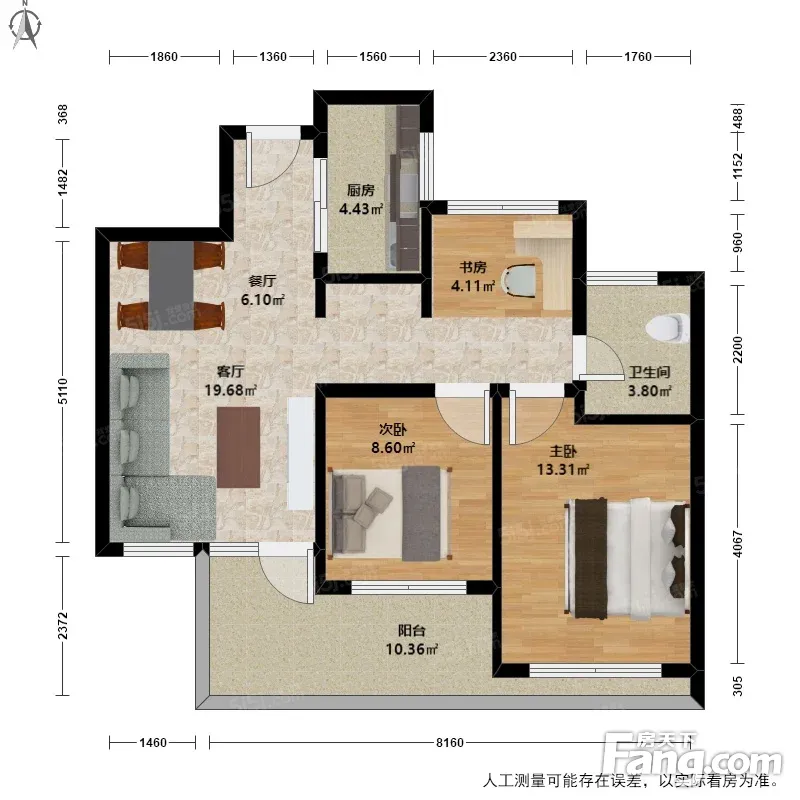 户型齐全,主打户型方正,明卫,明厨,客厅朝南,主卧朝南三居