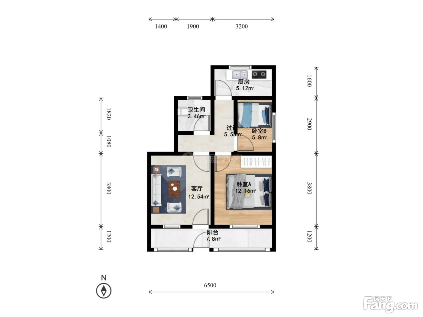 户型齐全,主打户型方正,明厨,明卫,客厅朝南,主卧朝南二居
