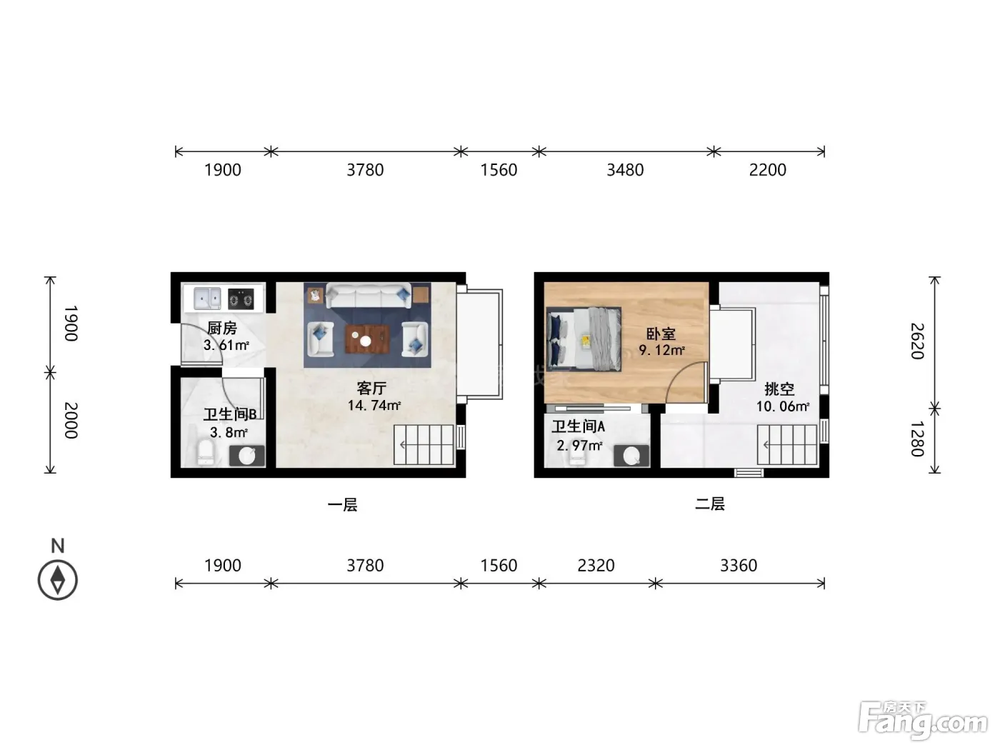 1室1厅2卫