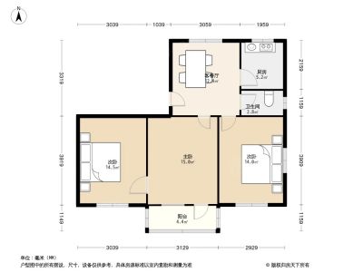 户型齐全,主打户型方正,明厨,客厅朝南,主卧朝南二居