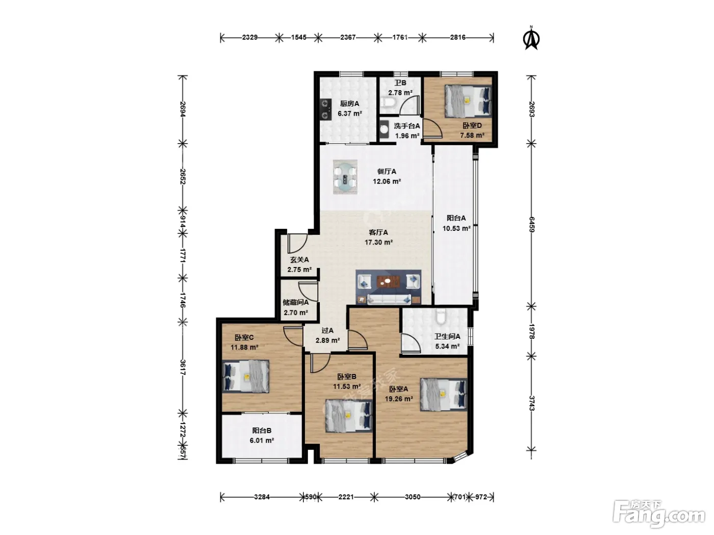 户型齐全,主打南北通透,全明格局,户型方正四居