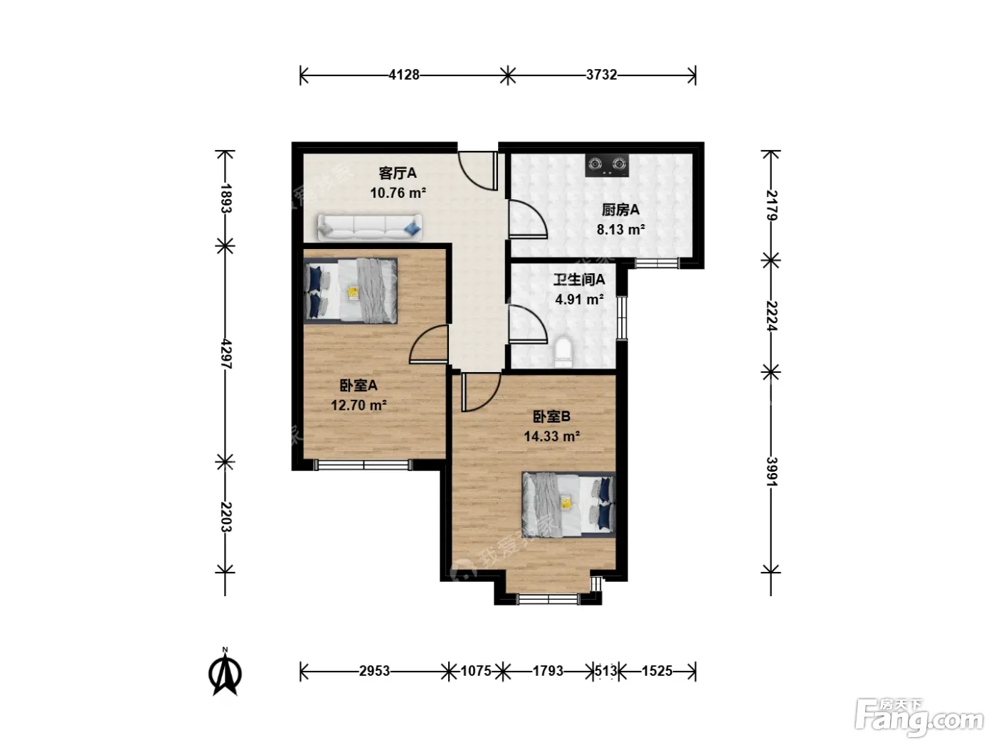 户型齐全,主打户型方正,明卫,主卧朝南二居