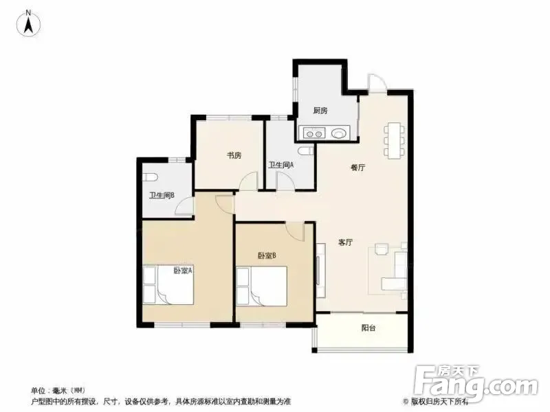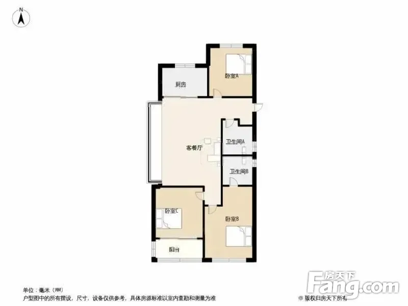 户型齐全,主打南北通透,全明格局,客厅朝南三居