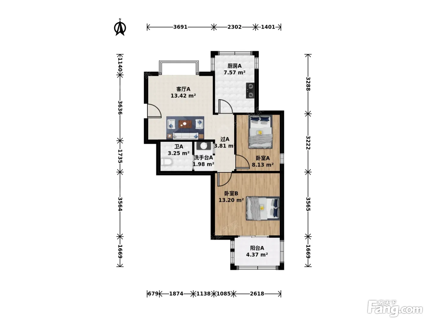 三塘·漾河公寓·2室·1厅