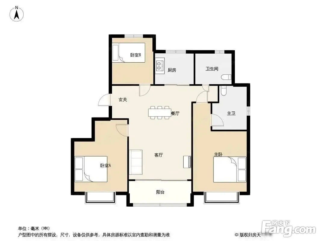 户型齐全,主打南北通透,干湿分离三居