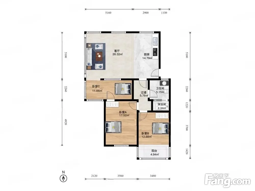 3室1厅1卫