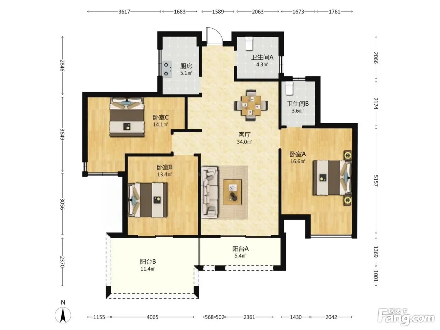 户型齐全,主打户型方正,明厨,明卫,客厅朝南,全明格局,双阳台,双卧朝南三居