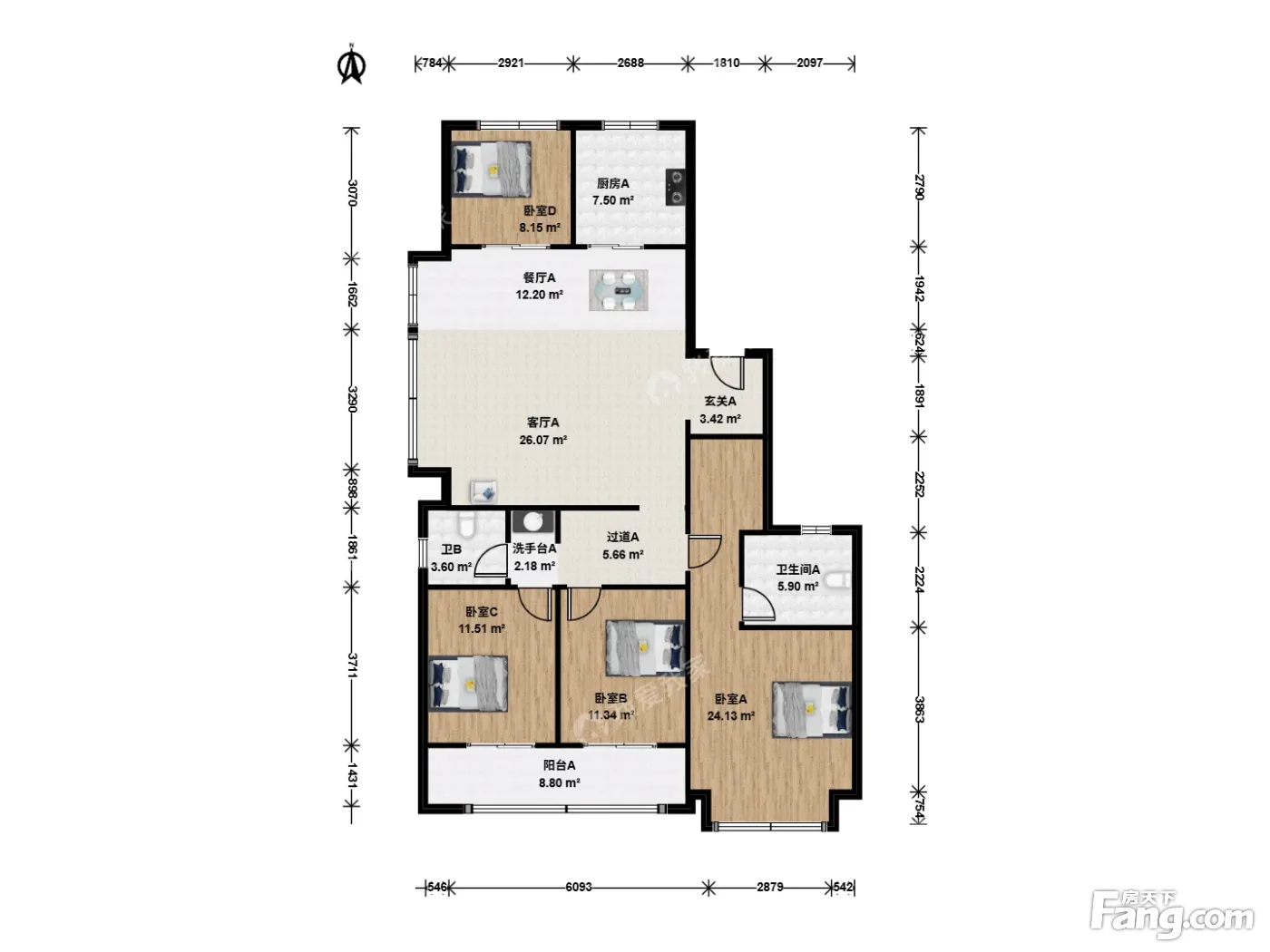 户型齐全,主打南北通透,全明格局四居