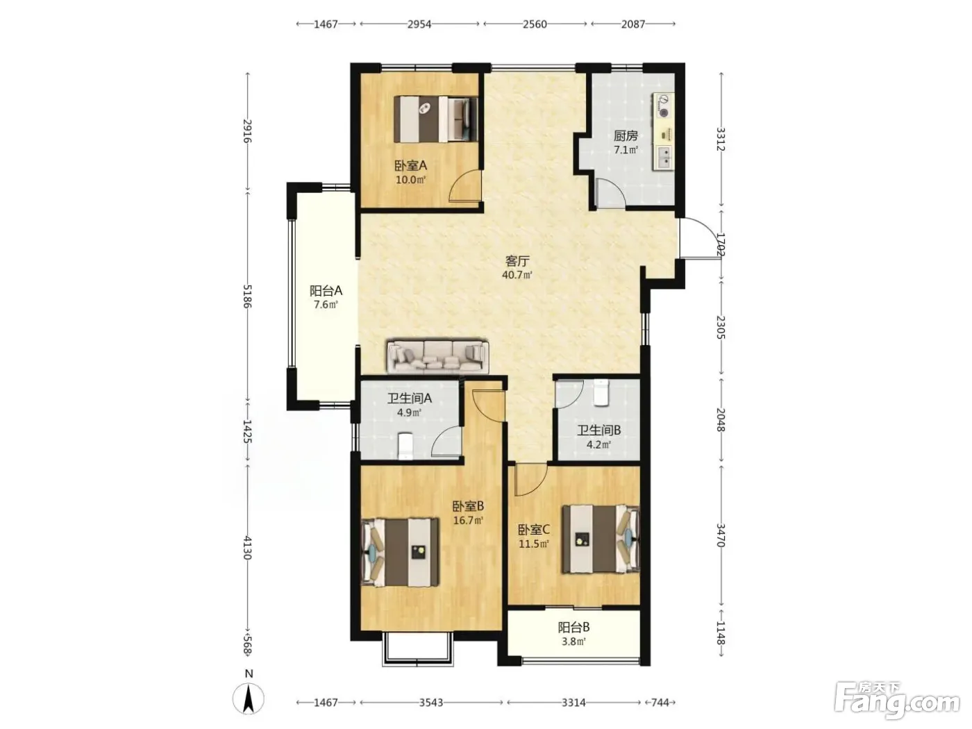 户型齐全,主打户型方正,明卫,明厨,客厅朝南,主卧朝南三居