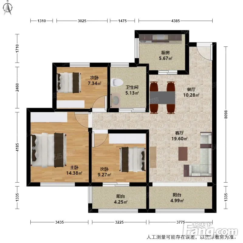 户型齐全,主打户型方正,独立衣帽间,明卫,明厨,主卧朝南三居