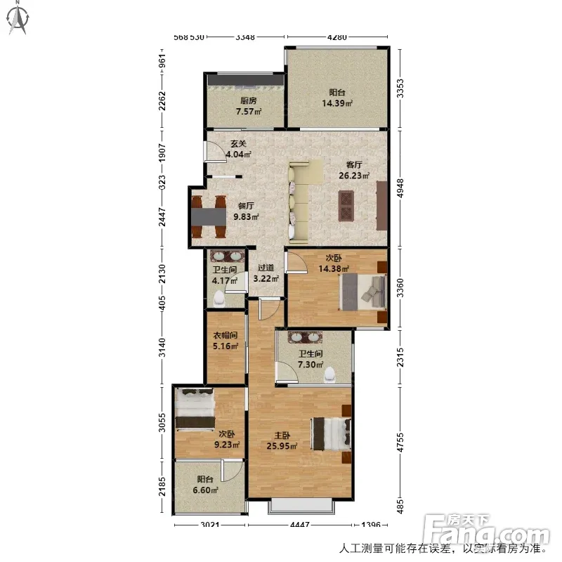 户型齐全,主打户型方正,独立衣帽间,明卫,客厅朝南三居