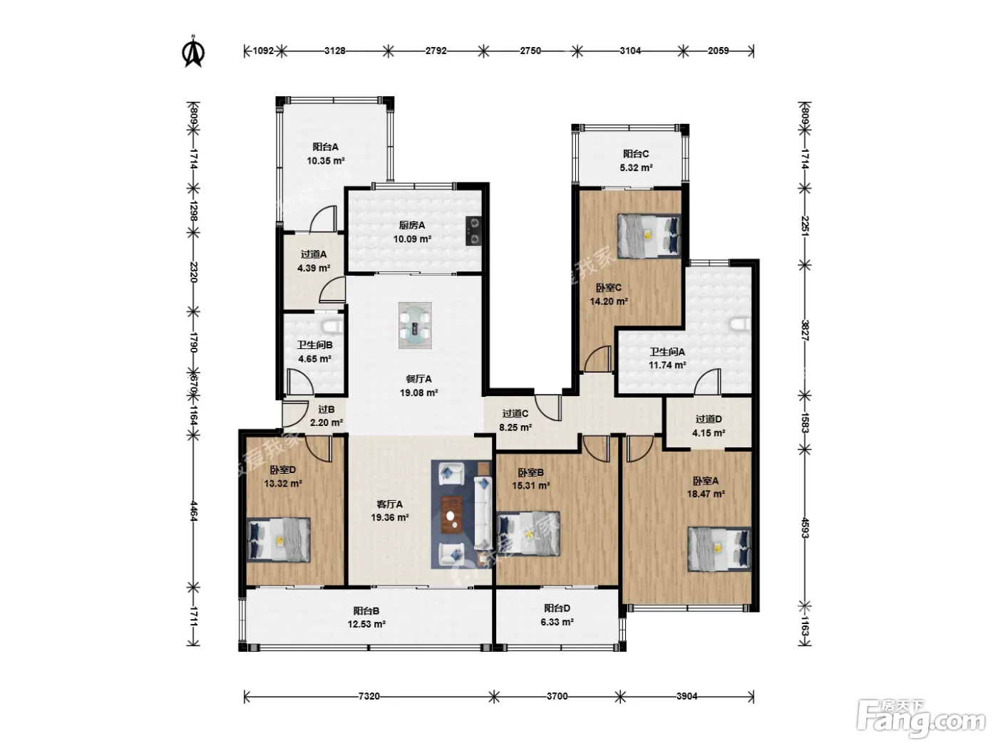 户型齐全,主打南北通透,全明格局四居