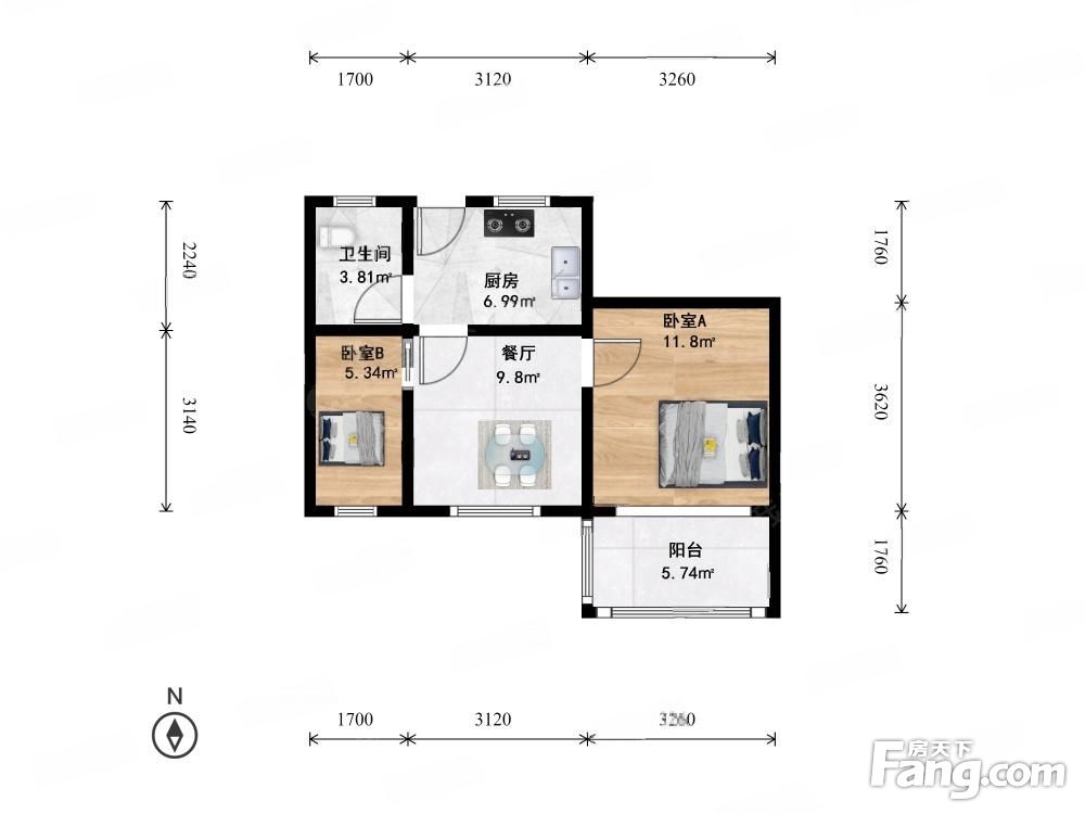 户型齐全,主打明厨,客厅朝南,双卧朝南,主卧朝南二居