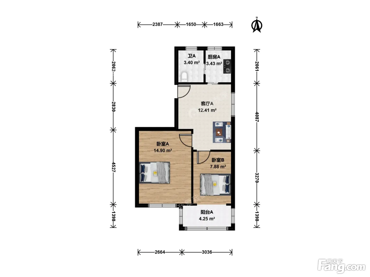 户型齐全,主打明厨,客厅朝南,双卧朝南,主卧朝南二居