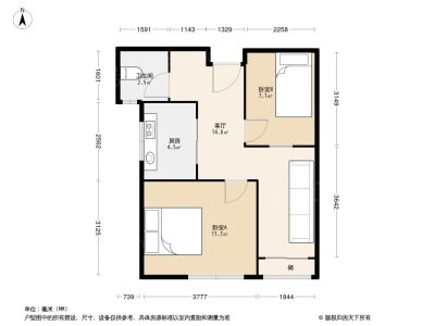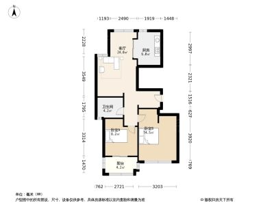 户型齐全,主打户型方正,明卫,明厨,客厅朝南,主卧朝南二居