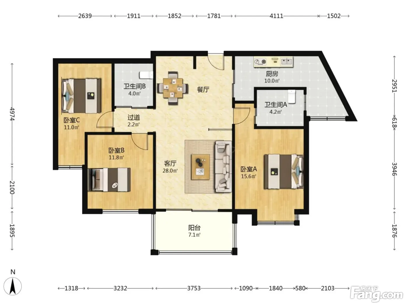 户型齐全,主打户型方正,明厨,明卫,客厅朝南,主卧朝南三居