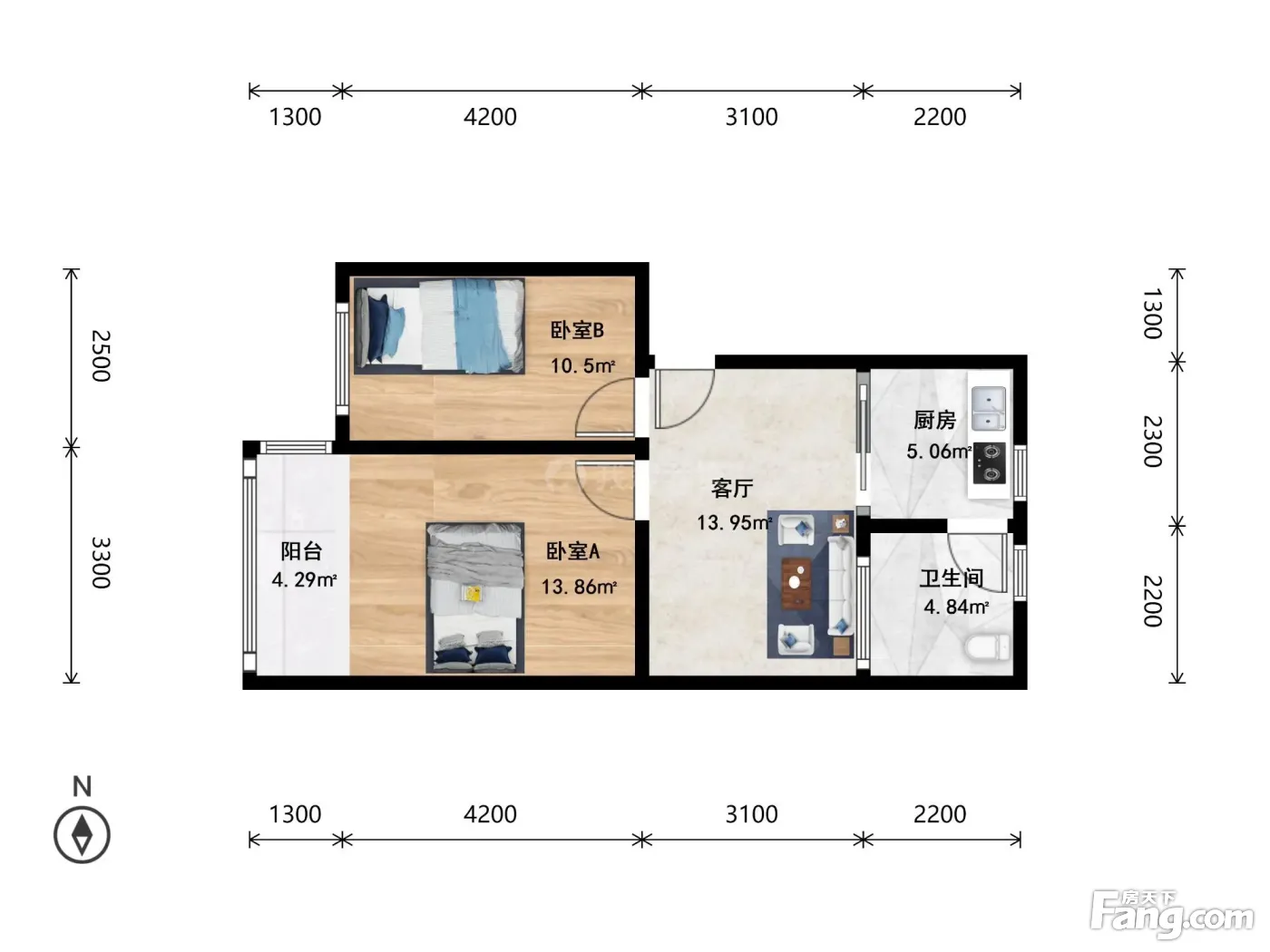 户型齐全,主打明厨,客厅朝南,双卧朝南,主卧朝南二居