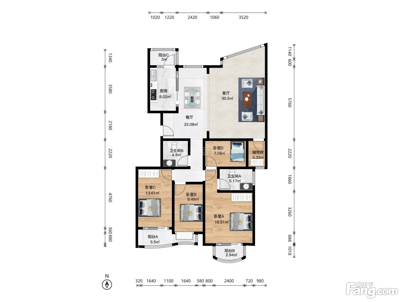 户型介绍:此房户型为4室2厅2卫,建筑面积为156.31平米,朝向为南。