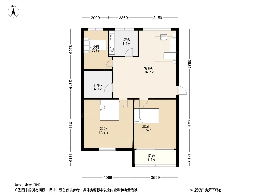 户型齐全,主打明卫一居