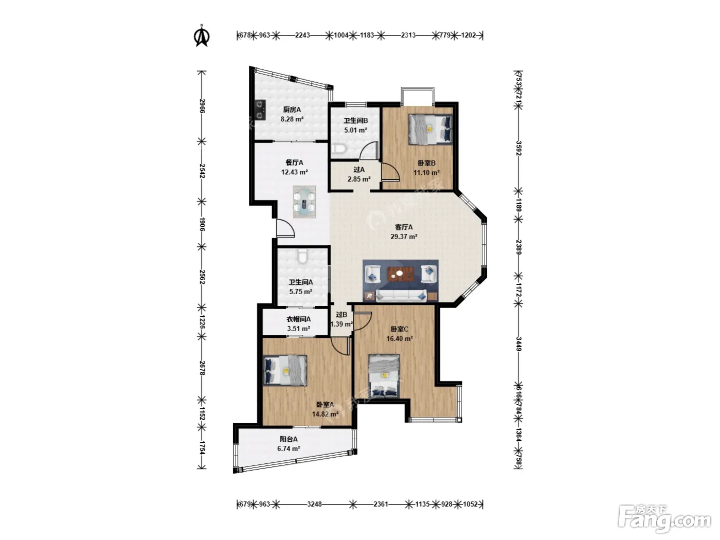 户型齐全,主打独立衣帽间,明厨三居
