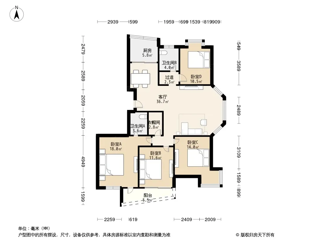 户型齐全,主打独立衣帽间,明厨三居