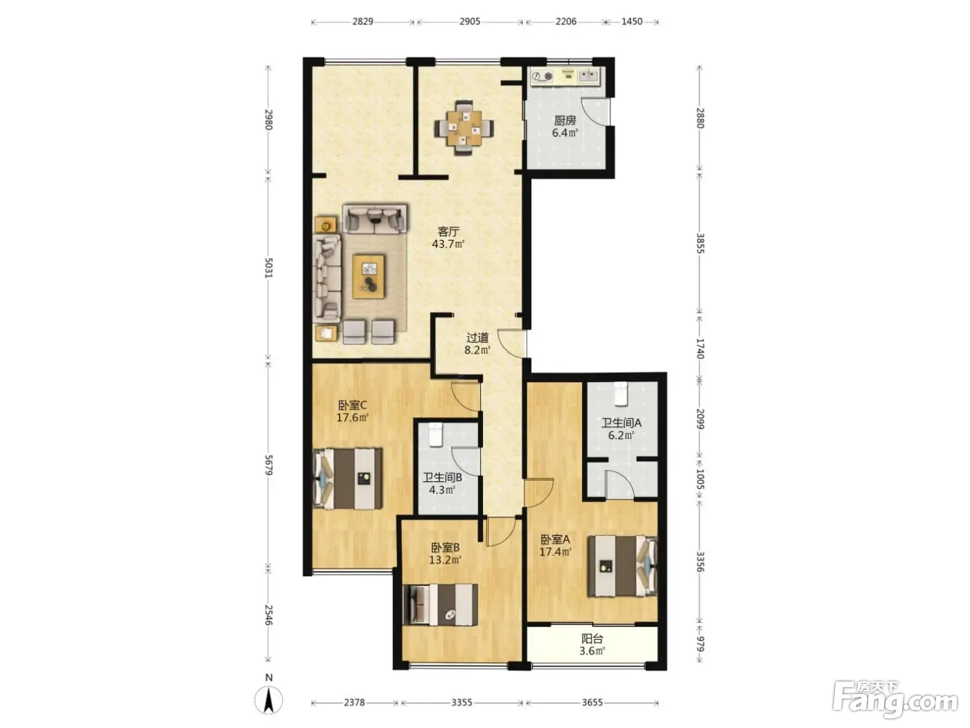 户型齐全,主打户型方正,明卫,客厅朝南,主卧朝南三居