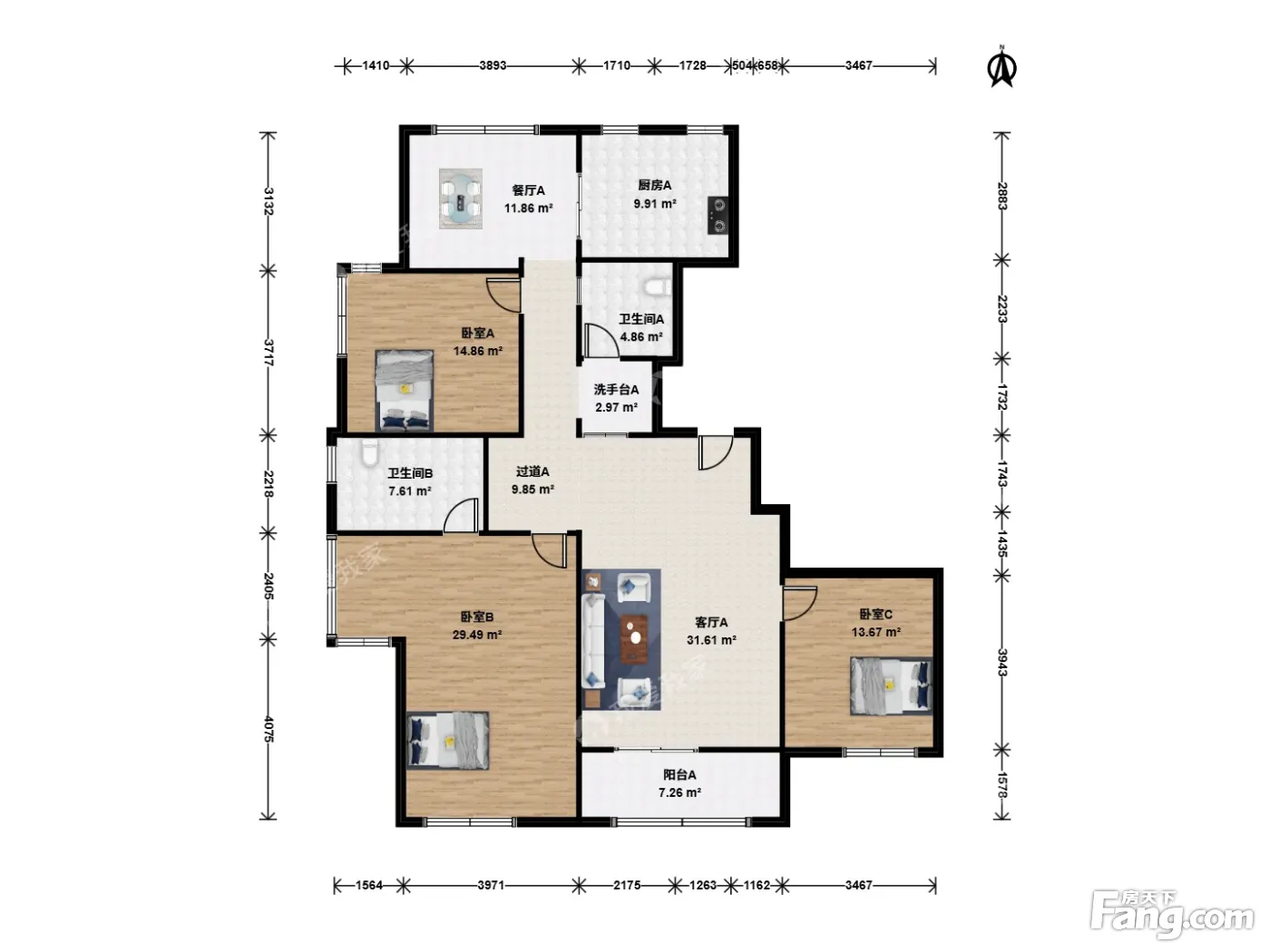 户型齐全,主打户型方正,明卫,客厅朝南,主卧朝南三居